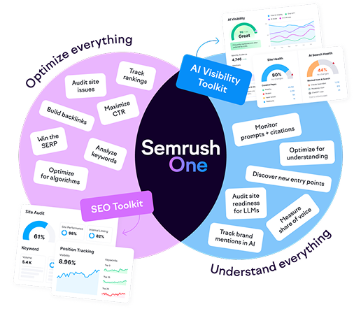 Get SEO insights, fix issues, and grow with a free Semrush account.